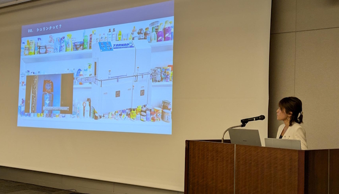 日本テクノロジーソリューションの明珍早夜氏は、「デジタル印刷が拓くシュリンク包装の新展開」をテーマに、熱旋風式シュリンク装置 TORNADO を紹介した。
