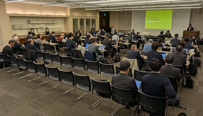 構成としては、 全体サマリーと各立場からの取り組みや情報を共有するセミナー、各メーカーのデスクトップ展示、そしてネットワーキングパーティの三部構成で実施されており、会場では、これらのプログラムを通じて、メーカーと印刷会社、ブランドオーナーがそれぞれの立場や視点から課題認識やビジネスの取り組みについて情報交換を行い、活発な議論が交わされた。